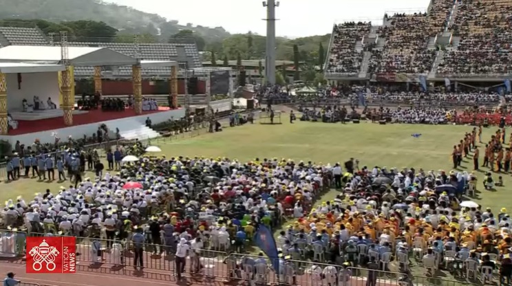Captura de pantalla video Papa Francisco en el estadio Sir John Guise en Papúa nueva Guinea